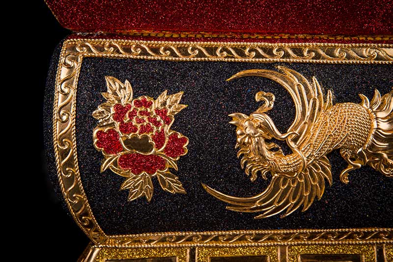 產(chǎn)品特征:24K金線漆線雕工藝,具特色的傳統(tǒng)民間手工藝精品,目前可考的有1400多年的歷史,金線雕乃純手工制作,相當(dāng)繁復(fù),工序上由原來簡(jiǎn)單的條、雕、刻發(fā)展到條、盤、纏、堆、雕鏤等十種純手工藝流程,做工精細(xì)雅致,形象逼真生動(dòng)、風(fēng)格古樸典雅,畫面栩栩如生。