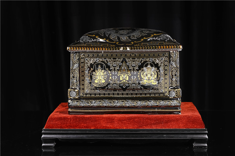 這款【佛光普照】產(chǎn)品,采用的是“錯(cuò)金銀”工藝,它是中國(guó)非物質(zhì)文化遺產(chǎn)名錄的一項(xiàng)美麗的藝術(shù),源自于“春秋戰(zhàn)國(guó)時(shí)期”至今已經(jīng)2000多年,把這種精湛工藝運(yùn)用到我們永生盒,既是傳承,亦是發(fā)揚(yáng)!產(chǎn)品上的圖案源自藏傳佛教的“唐卡”寓意永登西方世界,是生命的輪回不止,代表著中國(guó)傳統(tǒng)佛教的美好寓意。尺寸:300x230x210mm