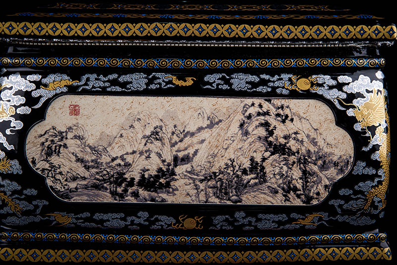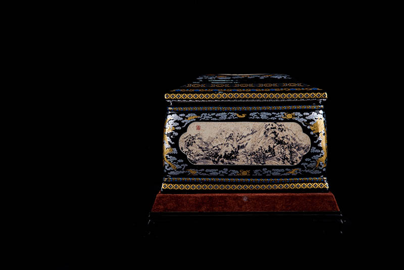 景德鎮(zhèn)安泰福壽陶瓷有限公司,永生盒系列之《富春山居圖》:本款產(chǎn)品是與浙江省杭州市桐廬殯儀館共同開發(fā)設(shè)計(jì),采用中國(guó)十大傳世名畫之一《富春山居圖》作為主要背景,配之以“祥云”、“龍鳳”,“蝙蝠”加以點(diǎn)綴,圖案以浙江省富春江作為背景,80%為桐廬境內(nèi)富春江景色,富春山居圖被譽(yù)為“畫中之蘭亭”,對(duì)于桐廬殯儀館而言,這更是一種家鄉(xiāng)情懷,表達(dá)了對(duì)于藝術(shù)不懈的追求,也是桐廬人民引以為傲的佳品。尺寸:340x230x250mm