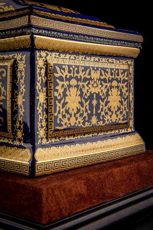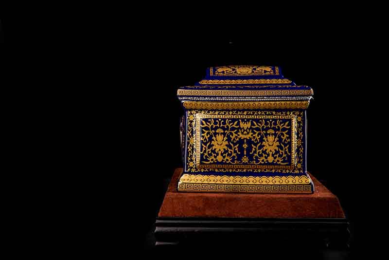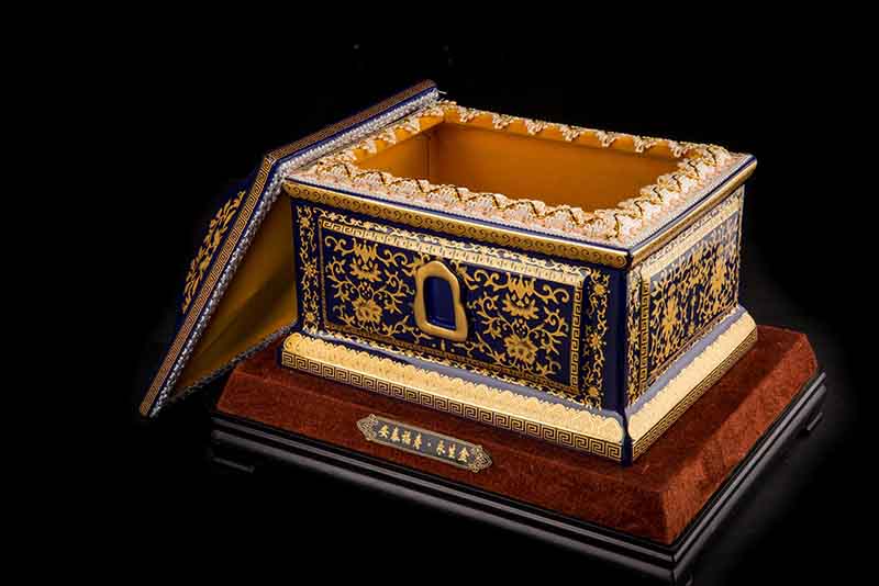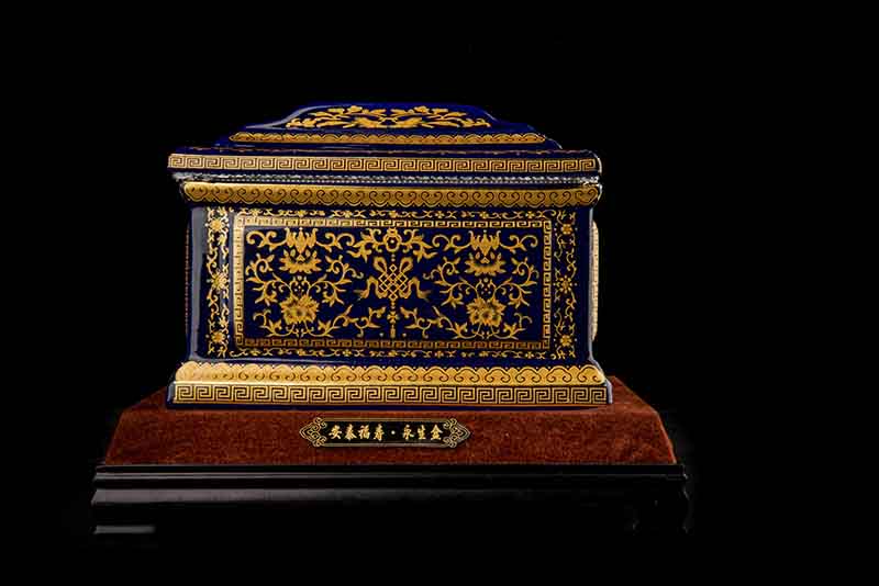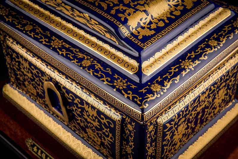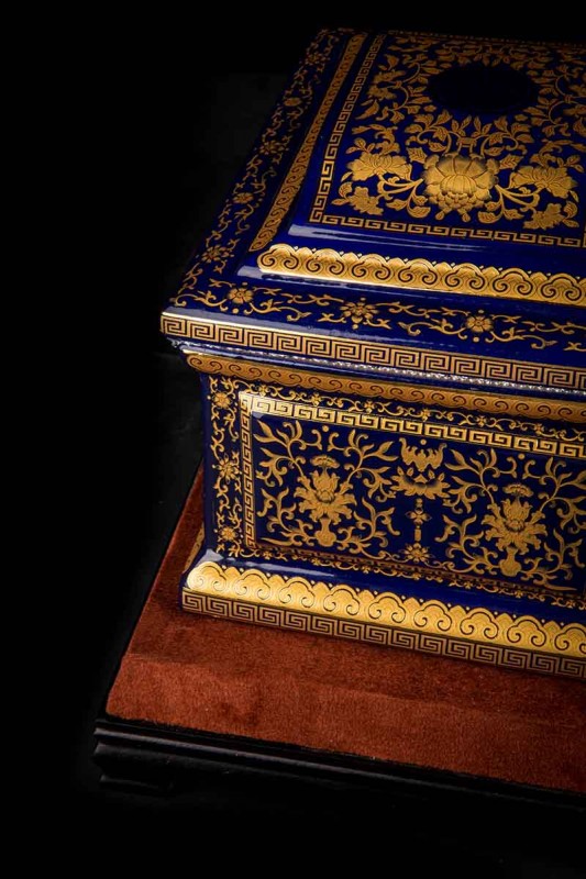 這款【吉祥如意】系列產(chǎn)品,目前有幾種顏色釉系列,黃、藍(lán)、紅、以及黑。這款產(chǎn)品運用中國古代傳統(tǒng)的吉祥紋飾—“纏枝蓮”?!袄p枝蓮”常運用在陶瓷作為點綴,因其結(jié)構(gòu)連綿不斷,故又具“生生不息”之意,同樣保后代代代繁榮。尺寸:300x230x210mm