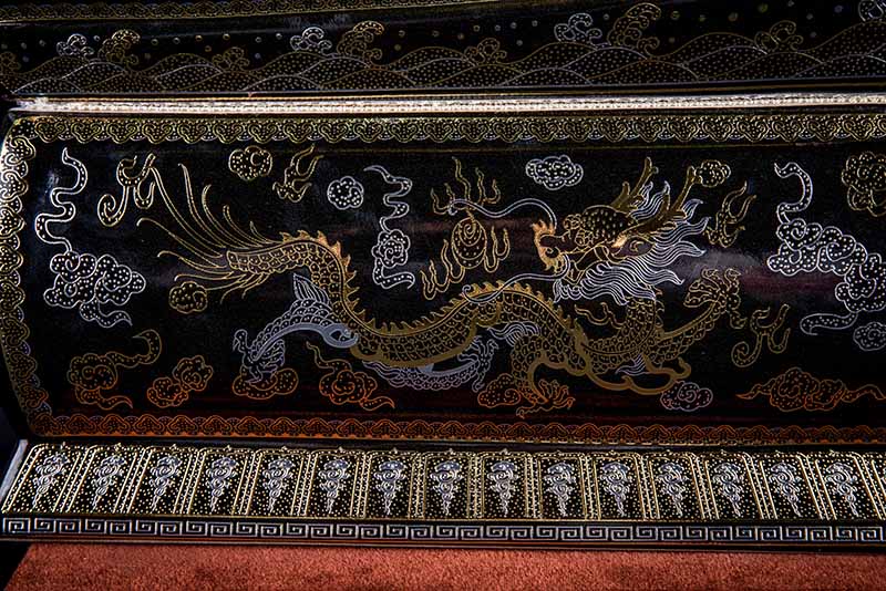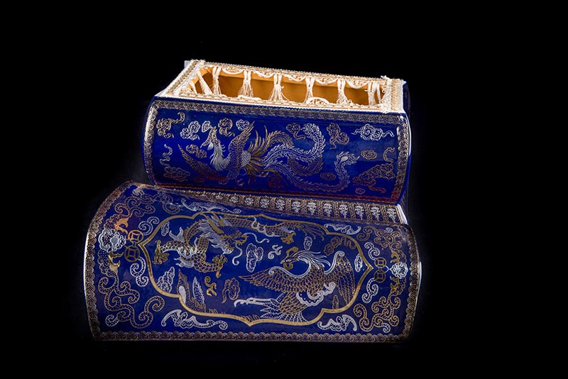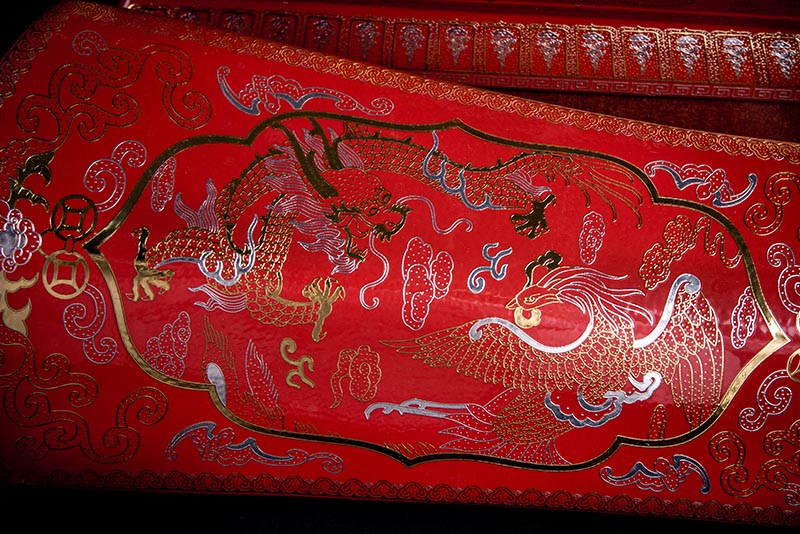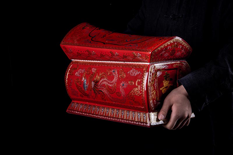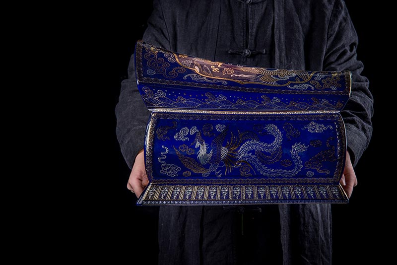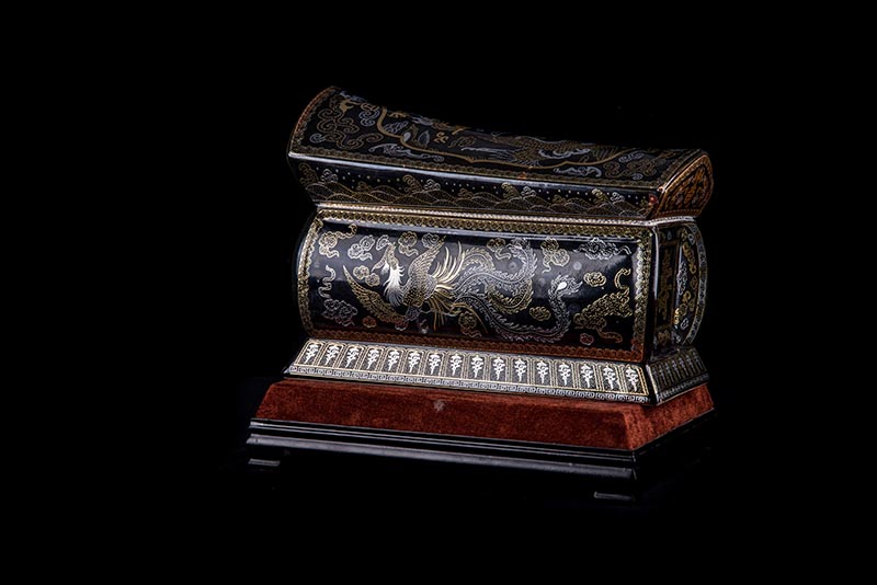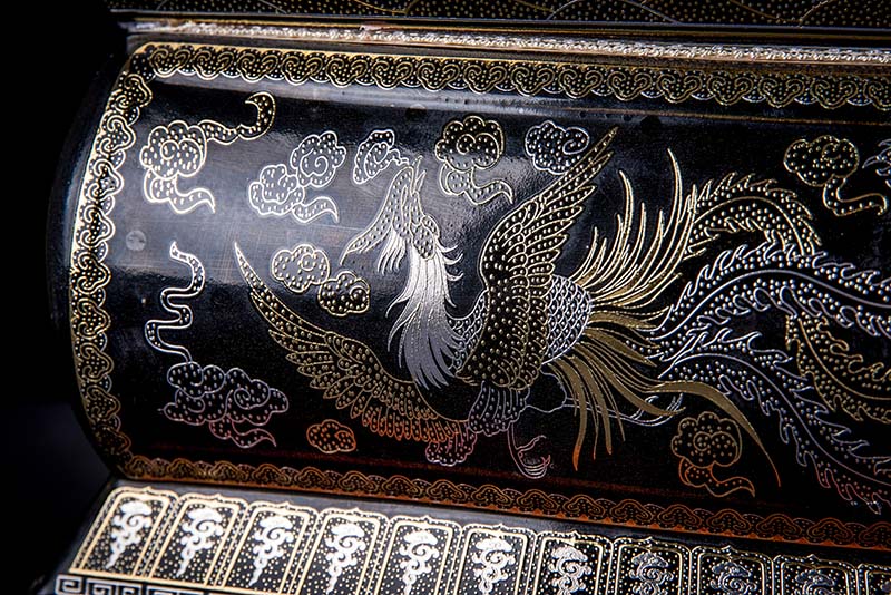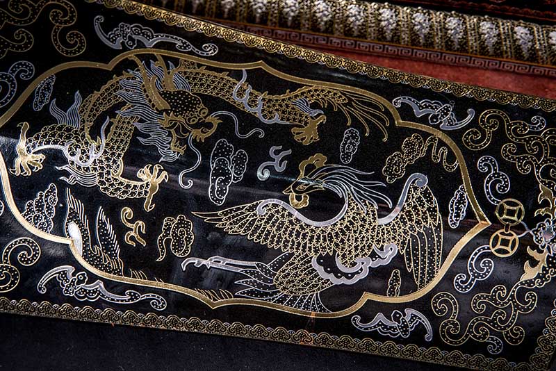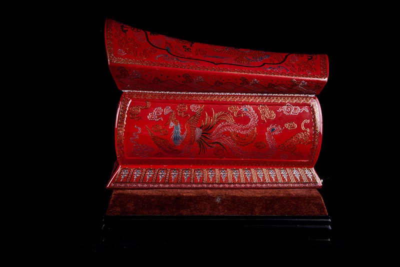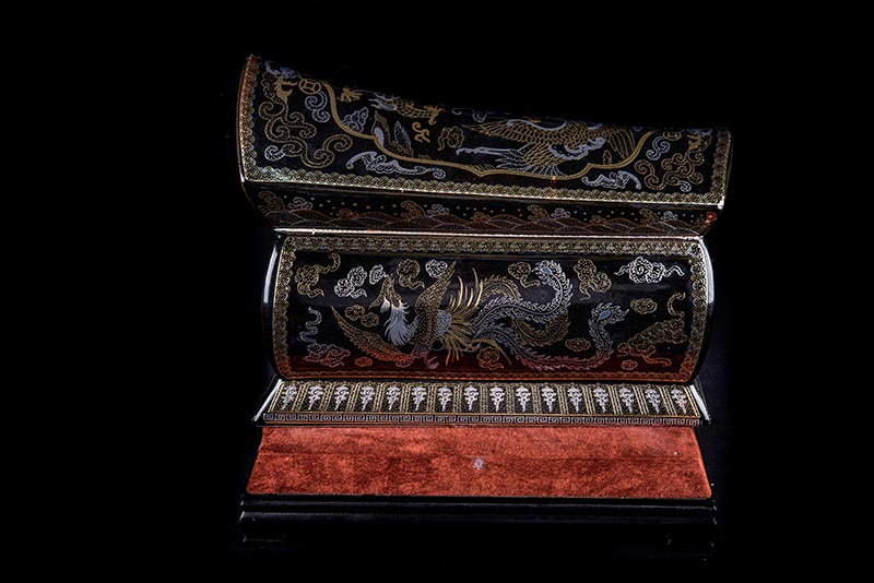 這款【金銀龍鳳】系列產(chǎn)品器型是傳統(tǒng)的長(zhǎng)棺造型,古人常說:見棺者,升官發(fā)財(cái),可見它的美好寓意。我們可以看到這款產(chǎn)品,一面龍,一面鳳,素有“龍鳳呈祥”一說,采用的是“錯(cuò)金銀”工藝,它是中國(guó)非物質(zhì)文化遺產(chǎn)名錄的一項(xiàng)美麗的藝術(shù),源自于“春秋戰(zhàn)國(guó)時(shí)期”至今已經(jīng)2000多年,把這種精湛工藝運(yùn)用到我們永生盒,既是傳承,亦是發(fā)揚(yáng)!尺寸:400x220x290mm