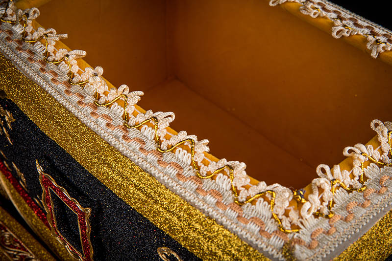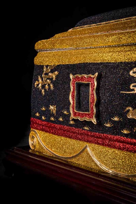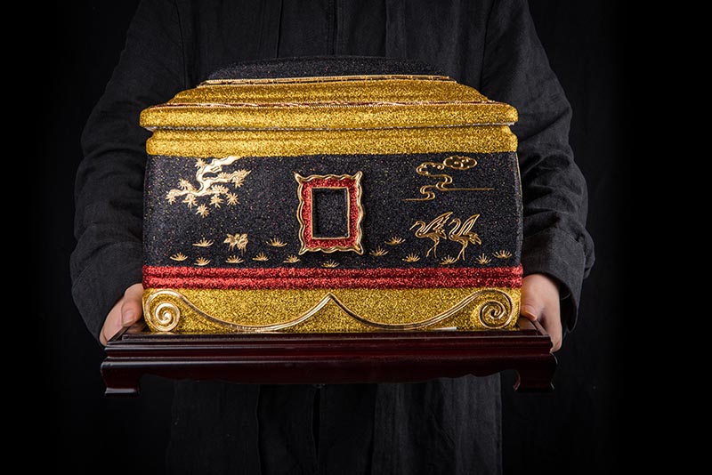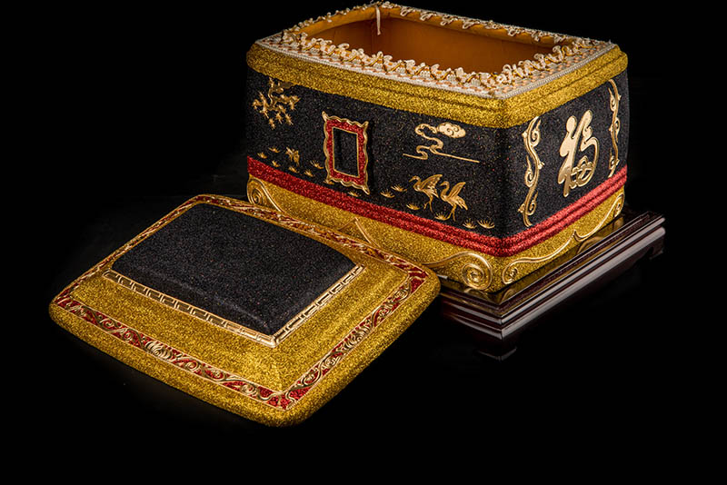 產品特征:24K金線漆線雕工藝,具特色的傳統民間手工藝精品,精細雕刻,線條流暢,顏色搭配簡約大氣,松鶴延年圖案更是寓意福壽延年。